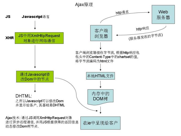 为了能够在后台异步与服务器进行通讯, 微软在IE中添加了两个组件: 负责与服务器通讯的组件(XMLHTTPRequest)和XML的处理组件. 采用XML作为数据交换的载体, 在多语言处理时具有优势, 但xml的处理成本较高, 实际上Ajax中通常采用Json对象在客户端浏览器和服务器之间传递数据.