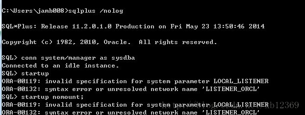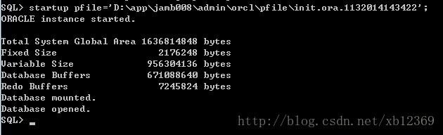然后回到cmd中,执行:startuppfile='D:\app\jamb008\admin\orcl\pfile\init.ora.1132014143422'