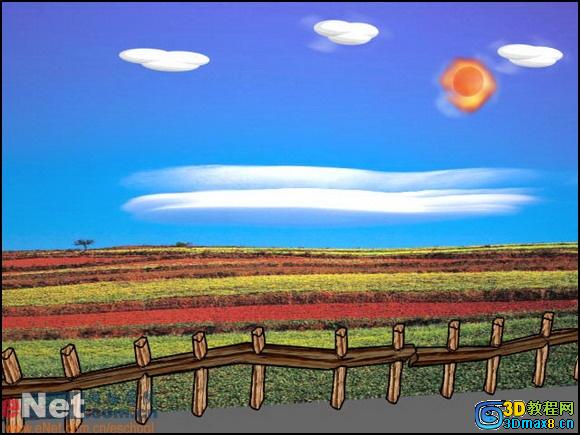 下面我们来用3DMAX制作一幅卡通风景。先看一下效果: