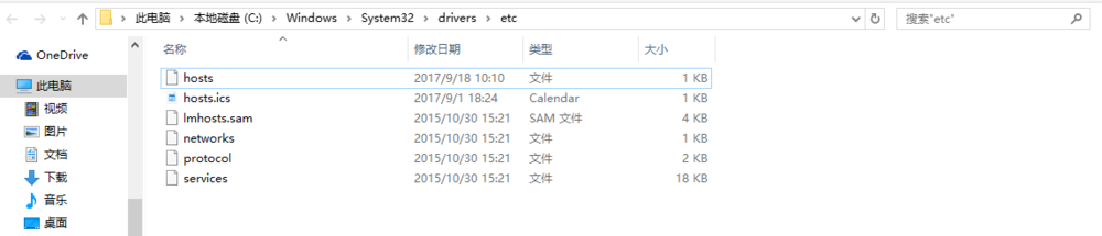 注意:hosts是无后缀的(没有扩展名的系统文件)!