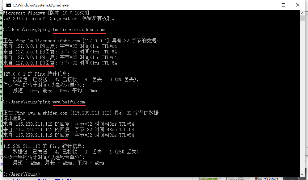 最后就是看一下是否设置成功了,进入DOS系统下面看:Win+R→输入cmd→ping新建的项目地址,有数据通信说明正常了(回复为127.0.0.1为本机回复)。如果没有ping新建的项目地址有问题,电脑关机、重启一下看看。(如果还不行的话,暂时超出能力范围,望其指出完善)