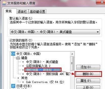 也可以进入控制面板找到语言再到文本与输入语言选项,找到输入法设置,进入如下界面,即可删除一些不常用的输入法了,如下图: