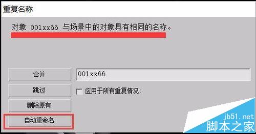 5、有时候会出现名字一样的模型,那就让系统为您自动重命名,点自动重命名。或者自己输入名字,点击合并