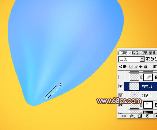 8、新建一个图层,用钢笔勾出下图所示的选区,羽化5个像素后填充淡蓝色:#7FE5FF,取消选区后添加图层蒙版,用黑色画笔修饰一下边缘过渡,效果如图12。
