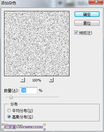 8、将前景色设置为白色,新建一层,填充前景色,然后滤镜--杂色--添加杂色。