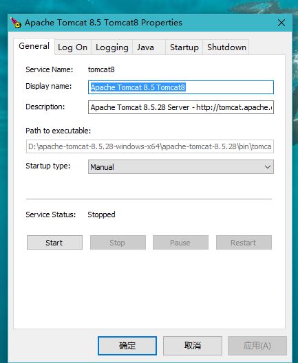 7.本人初次配置完成之后,启动时提示Tomcat显示指定的服务未安装,主要原因是 service.bat未执行,附上相应解决办法: