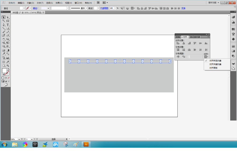 8.框选住所有小矩形,然后shift+F7打开对其面板,选择水平居中分布