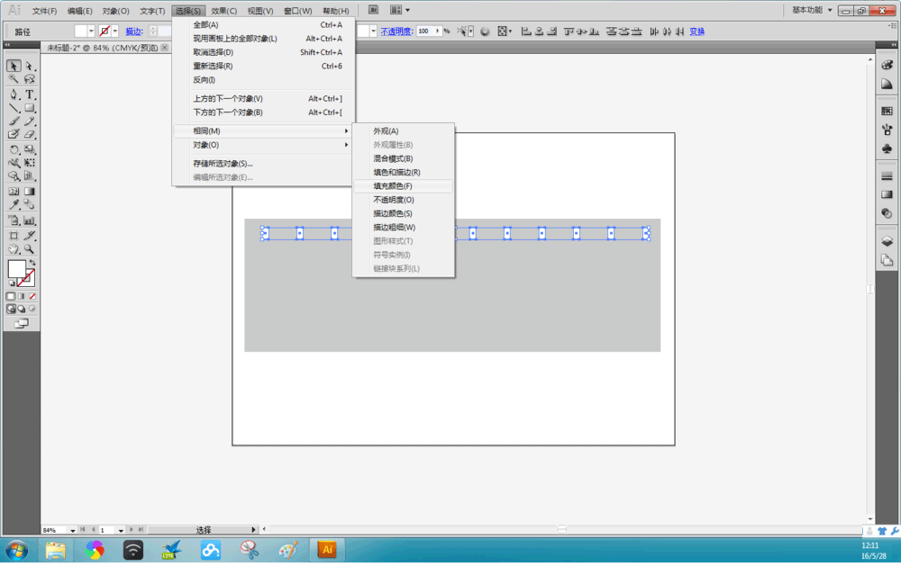 4.选择矩形工具,将描边色设置为无,填色设置为灰色,绘制一个矩形