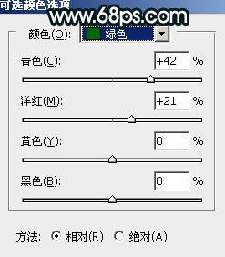 8、创建可选颜色调整图层,对黄、绿、青、中性色进行调整,参数设置如图13 - 16,确定后按Ctrl + Alt + G 创建剪切蒙版,效果如图17。这一步给图片暗部增加暖色。