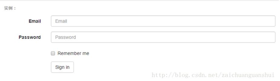 <form class="form-horizontal" role="form"> <div class="form-group"> <label for="inputEmail3" class="col-sm-2 control-label">Email</label> <div class="col-sm-10"> <input type="email" class="form-control" id="inputEmail3" placeholder="Email"> </div> </div> <div class="form-group"> <label for="inputPassword3" class="col-sm-2 control-label">Password</label> <div class="col-sm-10"> <input type="password" class="form-control" id="inputPassword3" placeholder="Password"> </div> </div> <div class="form-group"> <div class="col-sm-offset-2 col-sm-10"> <div class="checkbox"> <label> <input type="checkbox"> Remember me </label> </div> </div> </div> <div class="form-group"> <div class="col-sm-offset-2 col-sm-10"> <button type="submit" class="btn btn-default">Sign in</button> </div> </div> </form>