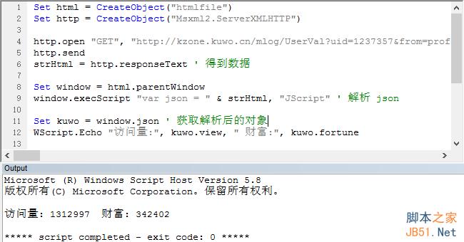 WScript.Echo "访问量:", kuwo.view, " 财富:", kuwo.fortune