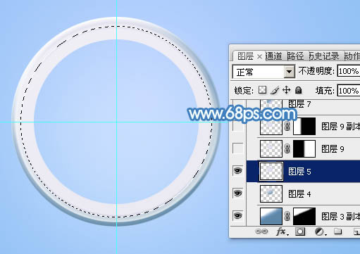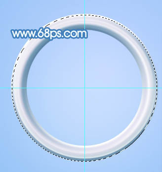 选择椭圆选框工具以交点为圆心,按住Alt + Shift + 按住鼠标左键拖动,拉出一个合适的正圆选区,然后填充白色。