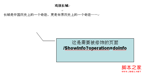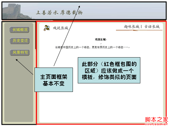 当用户在左边导航栏点击“戏说长城”( /ShowGreatWall.do)时,右边的“戏说长城”页面将会被指定的模板修饰