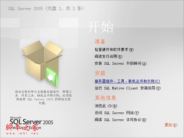 然后选择安装——服务器组件、工具、联机丛书和示例
