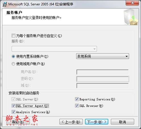 这个使用内置系统账户即可,最下面的选项不重要。