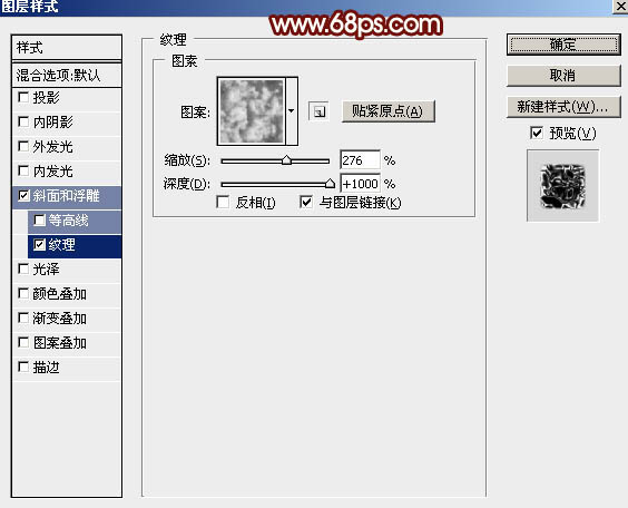 2、选择菜单:图层 > 图层样式 > 斜面和浮雕,参数设置如图3,设置好后再设置纹理。
