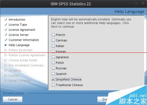 3、用户名可以随意填写。默认安装的帮助文档是洋文的,需要什么语言的需要自已勾选。