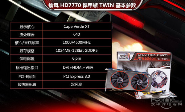 显卡方面:镭风HD7770 悍甲蜥Twin-1GD5采用28nm工艺制程,作为全新GCN构架的延续,采用Cape Verde显示核心构架,完全统一的核心渲染架构,具有640个流处理器,大红圈散热提升散热效率。目前HD7770虽然是老产品,但是不断降价后性价比十分出色。