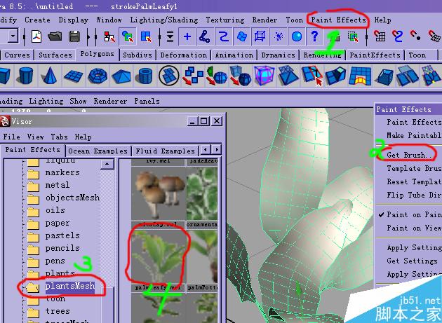 maya painteffect十分强大,这是其体现之一。如:可在凹凸不平的物体上直接绘制花草……