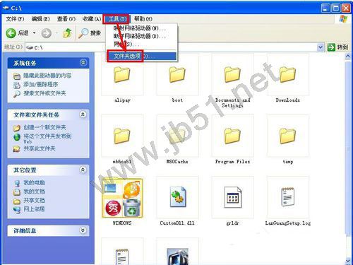 一般情况文件夹名消失的情况不会同时出现在所有磁盘中,我们找到没有出现这种情况的磁盘打开,并单击“工具”——文件夹选项。