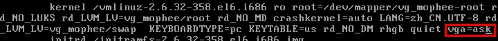 在kernel 的最后添加 “vga=ask”,如下图: