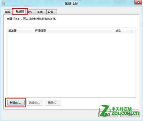 11、点击触发器,选择“新建”;