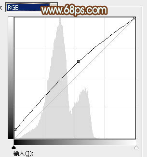 3、按Ctrl + Alt + 2 调出高光选区,按Ctrl + Shift + I 反选得到暗部选区,然后创建曲线调整图层,把RGB通道调亮一点,确定后用黑色画笔把底部区域擦出来,效果如图9。这一步把图片暗部颜色调亮。
