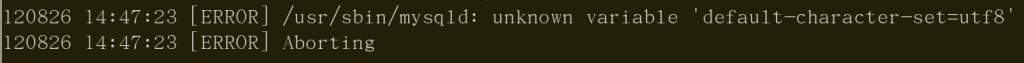 一个个排查,发现是在 [mysqld] 下设置 default-character-set=utf8 导致的。查看/var/lib/mysql/${hostname}.err 文件: