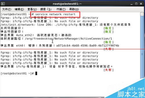 3、样就完成了用service network restart命令重启网卡的操作。