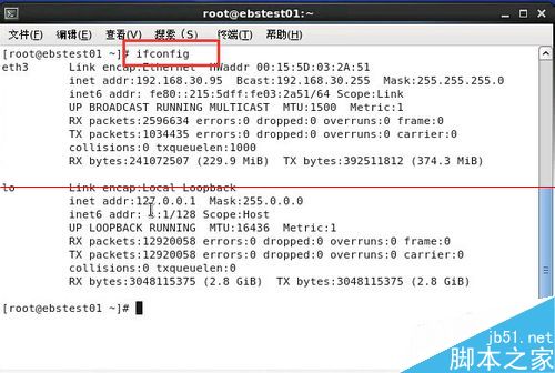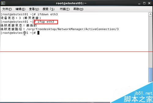 2、输入ifup eth3,对网卡eth3进行重新加载。
