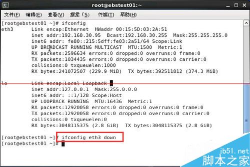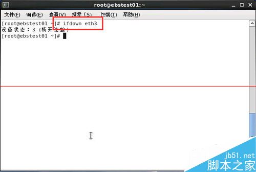 1、连接到命令行界面。输入ifdown eth3,对网卡eth3进行卸载。