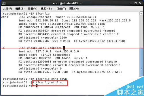 3、输入ifconfig eth3 up,重新加载eth3网卡。