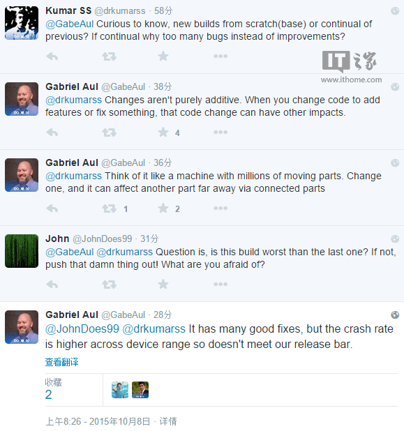Win10预览版在“进化”过程中总要不断产生新的Bug,微软也因此要不断进行修复,但这是为什么呢?微软Win10预览体验计划负责人Gabriel Aul亲自为你讲解其中缘由。