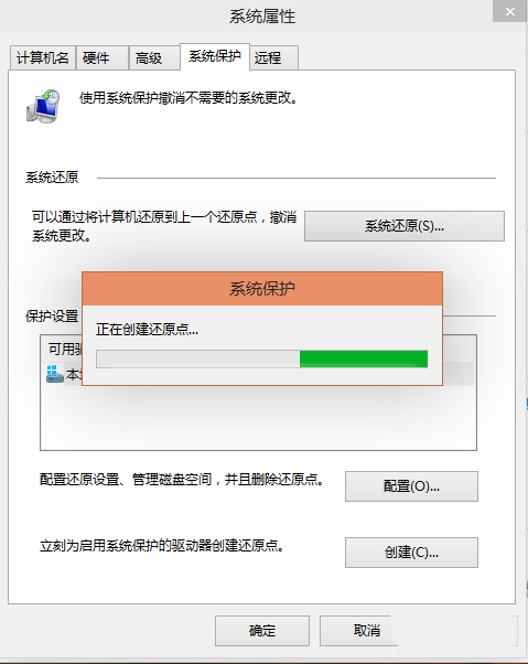 7、点击后,系统开始创建还原点,如下图所示。