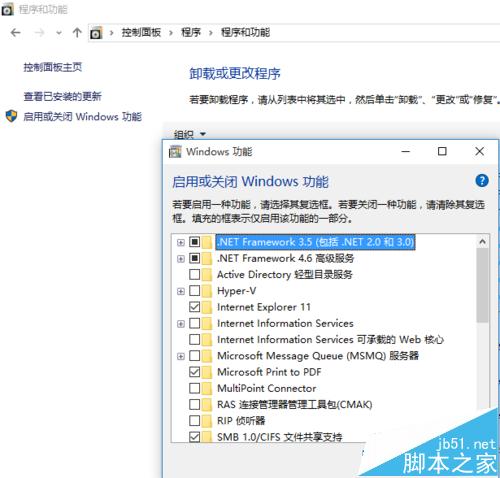 2、打开控制面板--程序--程序和功能--启用或关闭windows功能