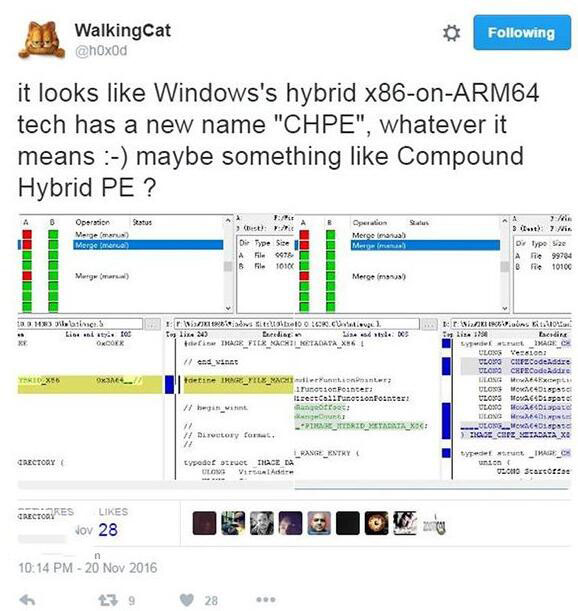加入传统x86程序模拟器支持后,ARM64手机芯片将展示出更强大的功能,使得主打办公的Windows10手机更有个性。根据微软著名铁粉WalkingCat在Twitter上的爆料,这项在手机运行x86程序模拟器的Win10版本代号为“CPHE”,其中“C”代表“Cobalt”,是手机运行x86程序模拟器的功能代号;“HP”可能是代表惠普Elite x3等设备;“E”代表“emulation”模拟器。