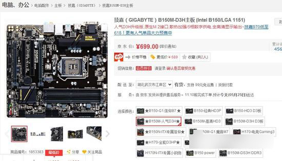 技嘉B150M-D3H京东价格