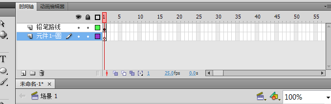 3、回到场景1,利用铅笔工具,随意画一条路径