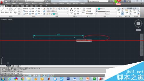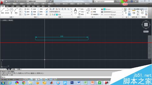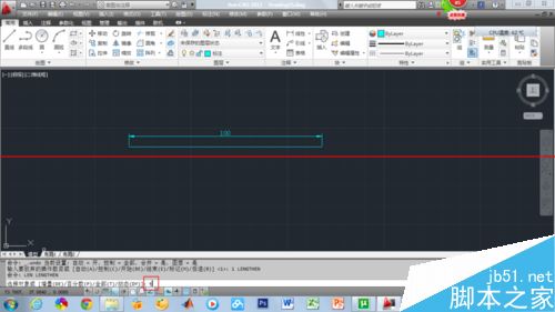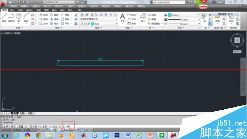 3、执行直线命令,画一条100mm的直线,并标注了数值。