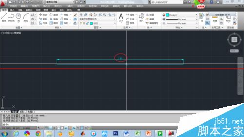 7、若动态(DY),输入dy,按enter键,输入数值@150,0,按enter键,这时端点向右增加150mm,左侧起点的位置不变。