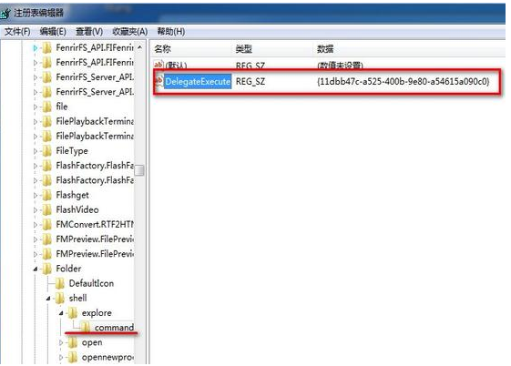 3.确定DelegateExecute数值数据栏中的内容是否为{11dbb47c-a525-400b-9e80-a54615a090c0}。如果不是,请输入 替换内容{11dbb47c-a525-400b-9e80-a54615a090c0} ,再“确定”保存