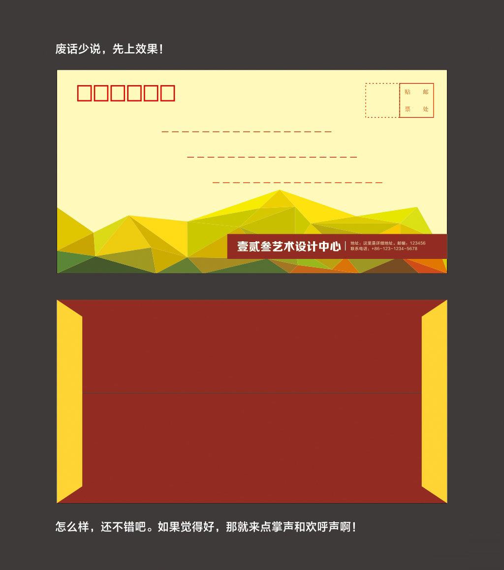 这篇教程是教脚本之家的朋友如何利用CDR绘制一款Low-Poly低多边形风格的艺术标准信封,教程主要面向刚刚学习CorelDRAW的新手朋友,因为在平面设计中,信封设计常常是设计师最先学习矢量软件的第一个课程,也可能是入行后的第一个设计订单。在本次教程中,我们从无到有绘制一个标准信封,希望对大家有所帮助!