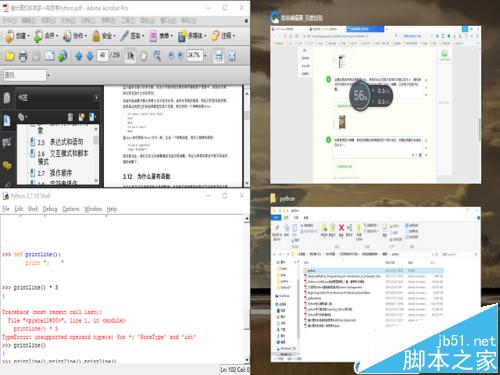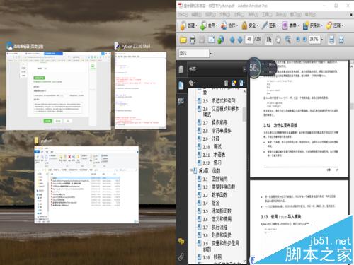 1、在win10打开多窗口的情况下,先将其中一个全屏,如下图如示,当前的窗口为PDF软件。