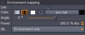 照明的设定非常简单。有了同样的材质发射器,两个平面和其他怀表内部的发射器物体后,我们就能够在后面的图层混合中获得非常不同的效果了。在每一个光源中添加一个fryrender物体修改器,可以通过图层混合来控制他们。为了模拟场景,我们还会使用到环境贴图(图09a-图09c)。
