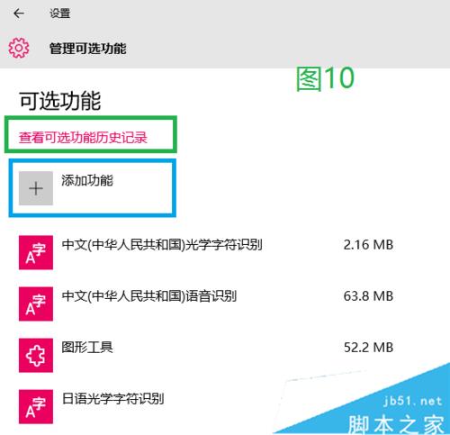 4、最后可以回到Windows可选功能,安装自己需要的功能,如图7,8,9。图10中的绿色框,可以查看既往的安装记录,如果出错能够看到出错代码,如图1。在图10中可以看到之前安装失败的【图像工具】已经安装上了