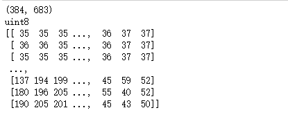 上面提到了两种获取灰度图的方式,读进来的灰度图的矩阵格式是(高度,宽度)。