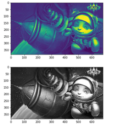 im_r = image[:,:,0] #红色通道 plt.imshow(im_r) plt.show() #此时会发现显示的是热量图,不是我们预想的灰度图,可以添加 cmap 参数解决 plt.imshow(im_r,cmap='Greys_r') plt.show()