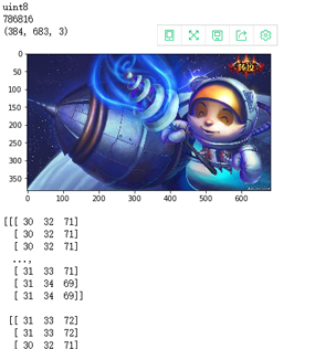 值得注意的是,opencv读进来的图片已经是一个numpy矩阵了,彩色图片维度是(高度,宽度,通道数)。数据类型是uint8。