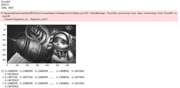 可以看到,灰度图像的矩阵的值被归一化了,注意注意!