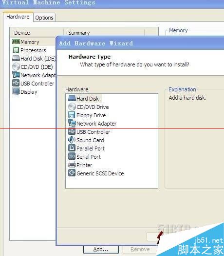 删除该硬盘,重新添加,在设备处选择【PhysicalDriver1】,因为U盘没有分区,选择【使用整个磁盘】,下一步